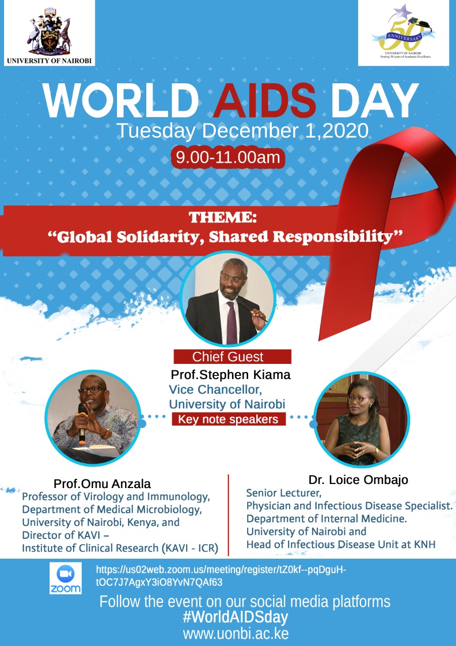 Dec 01 December 1, 8:00 am World Aids commemoration 2020. You are invited to the commemoration of World Aids Day 2020. Theme : Global Solidarity, Shared Responsibility Date: December 1, 2020 Time: 9.00 AM to 11.00AM Register Here:https://us02web.zoom.us/meeting/register/tZ0kf--pqDguHtOC7J7AgxY3iO8YvN7QAf63