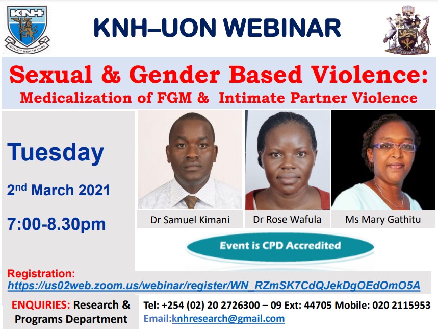 · Tuesday 2nd March 2021: 7:00-8:30PM - Sexual & Gender Based Violence: Medicalization of FGM & Intimate Partner Violence