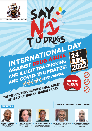 The University of Nairobi will hold celebrations to mark the International Day Against Drug Abuse and Illicit Trafficking (IDADA 2022) virtually.