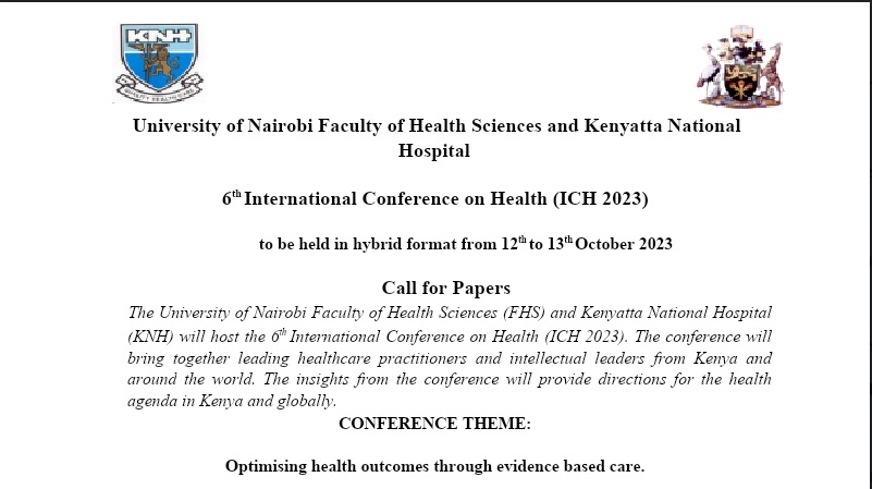 The University of Nairobi Faculty of Health Sciences (FHS) and Kenyatta National Hospital (KNH) will host the 6th International Conference on Health (ICH 2023) from 12th to 13th October, 2023.