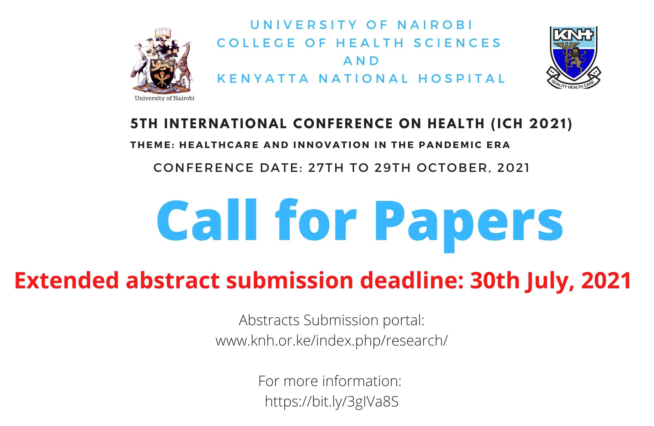 The University of Nairobi College of Health Sciences (CHS) and Kenyatta National Hospital (KNH) will host the 5th International Conference on Health (ICH 2021).